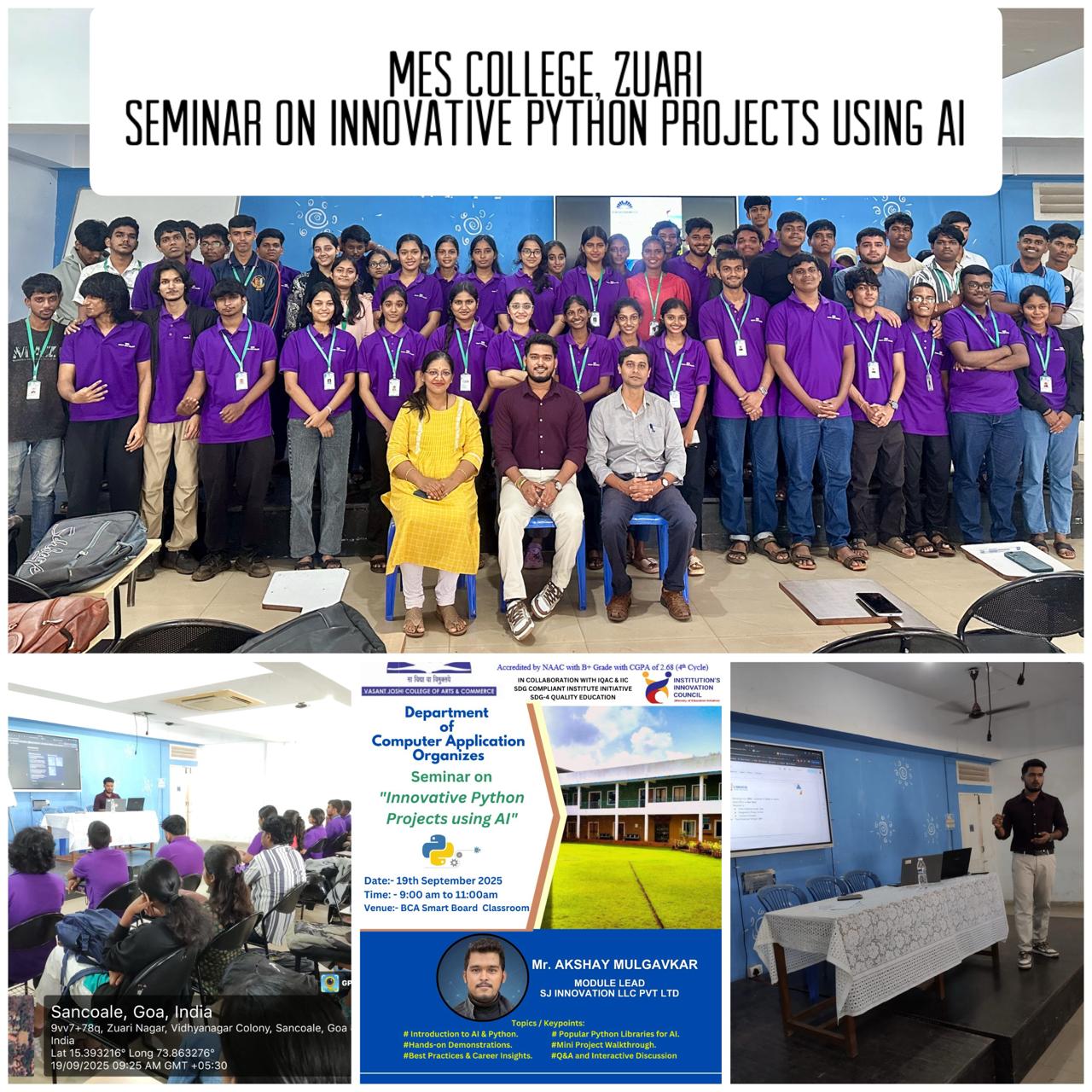 Seminar at MES College with students on technology trends, software careers, and applying classroom concepts to real projects.